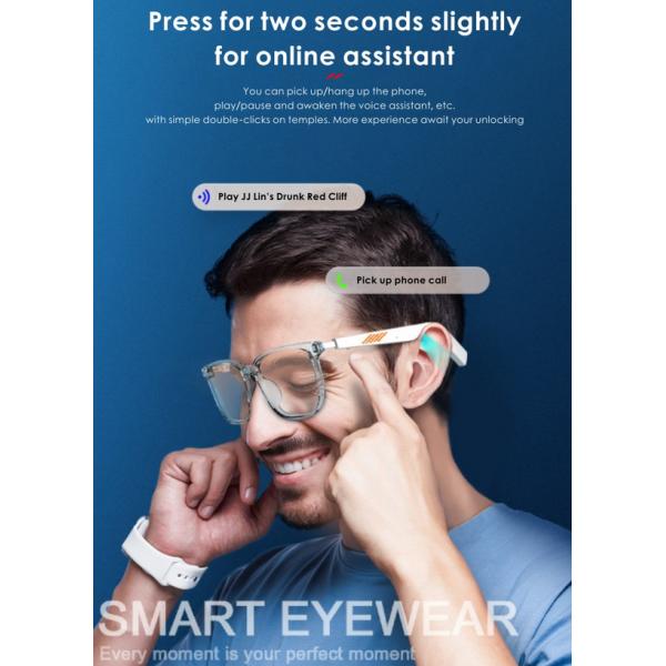 9. BLUETOOTH 5.0 CONNECTION -- Stable and easy to access to your cellphones and tablets, works with all devices which are Bluetooth enabled. It's very easy to connect.. You only need to switch on the smart glasses, connect the Bluetooth signal to your smart phone and it is ready to go!